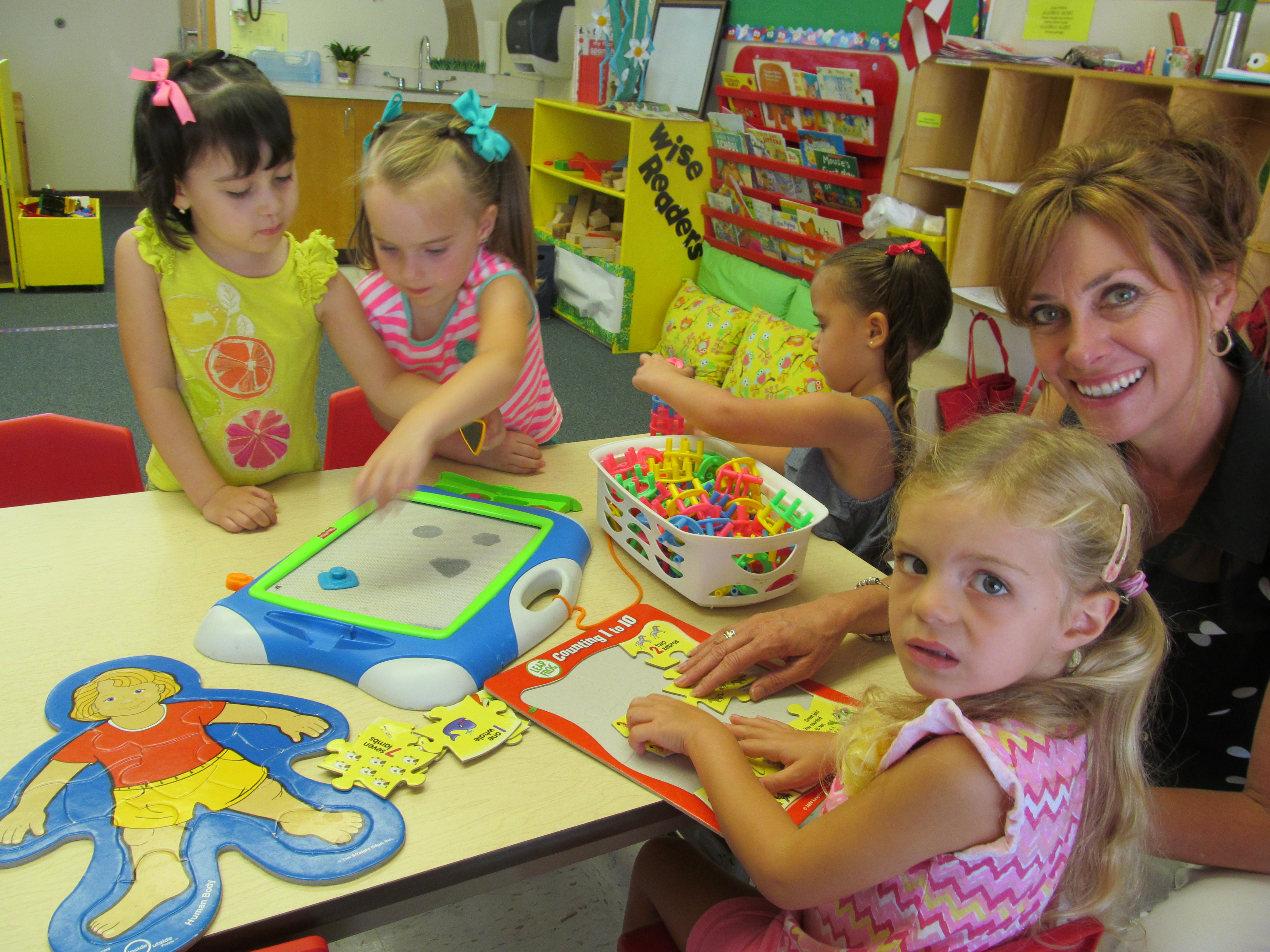 a vital building tool for future educational success. Many young children know their colors, some letters and numbers, but struggle in a social environment. Our three year old teachers have many years of experience working directly with this young age group. Many times, preschool is a child’s first experience in a structured setting with teachers and a group of children. It’s an opportunity to learn to share, follow instructions, and begin the foundation for learning success. Our program offers the benefit of essential playtime and also beginning the first step in pre-math and pre-literacy development.