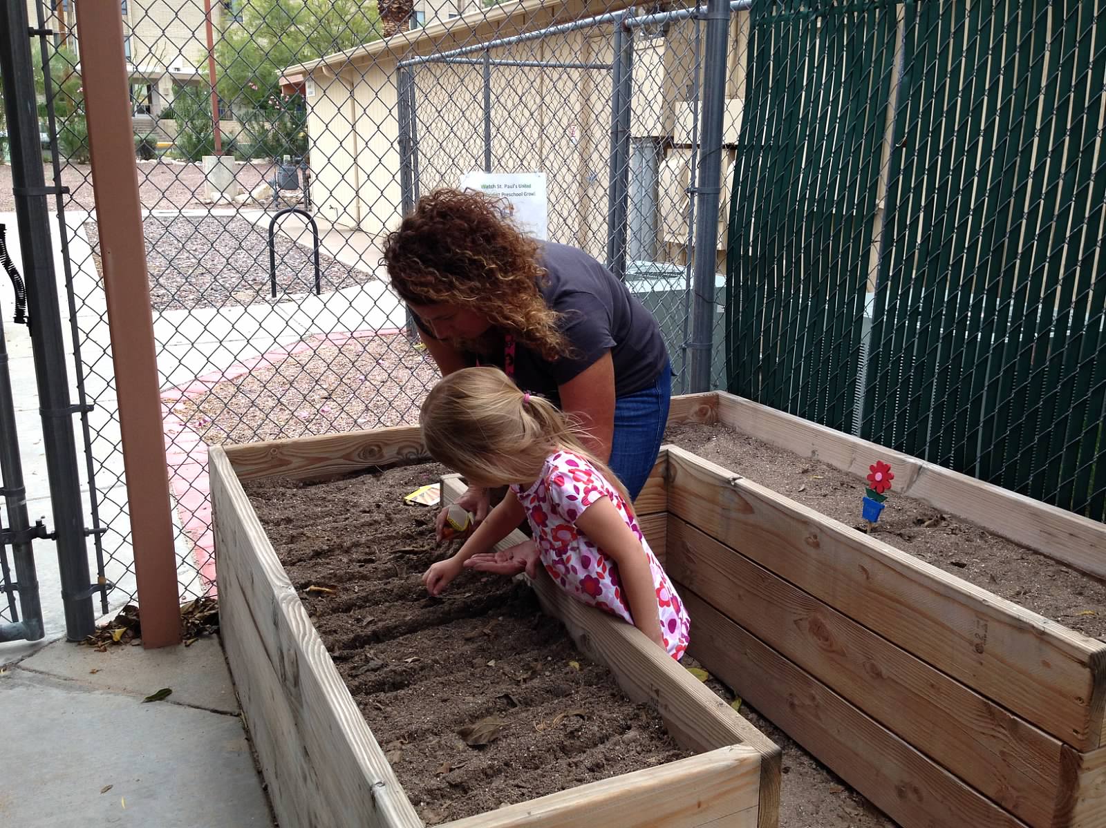 St. Paul’s UM Preschool is blessed to share the joy of gardening with our preschoolers thanks to the lovely garden which was built by one of our dads, Mike Van Fleet. Gardening offers our little ones hands-on learning opportunities and offers a wonderful sensory experience. In addition to the joy of playing (planting) in the dirt, gardening helps children learn valuable lessons about patience as they wait for vegetables to grow, responsibility as they see how necessary their care is to the garden, and teamwork, as they share in the tending of their garden with
