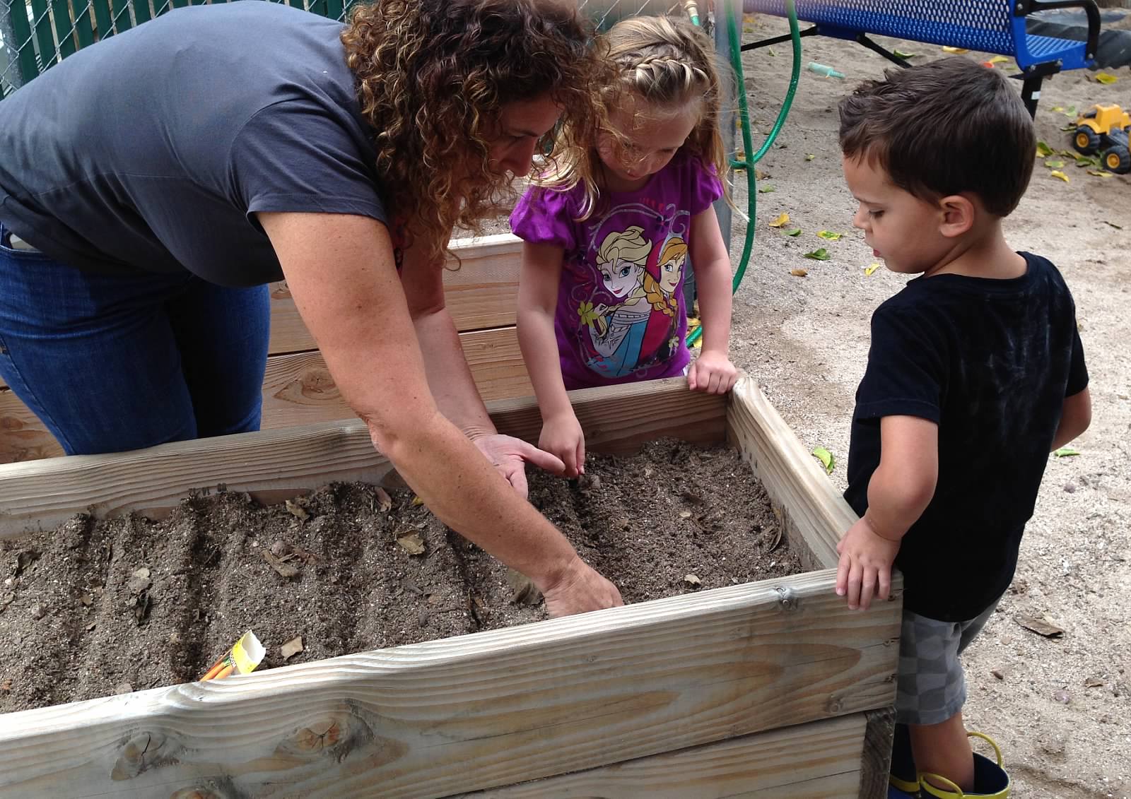 their classmates. Gardening helps our young children understand where fresh food comes from, and are fascinated in watching their vegetables pulled from the ground.
